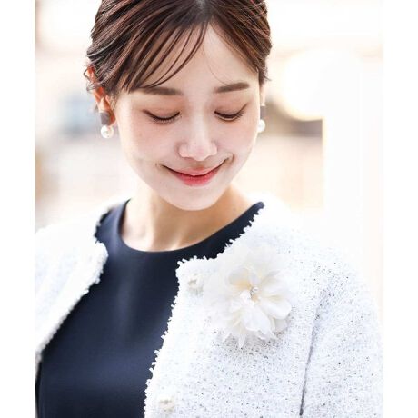 シフォンのやわらかさに、中央のビジューやパールが華やかさを演出してくれるコサージュ。存在感がありながらも女性らしいコサージュは式典や行事ごとにぴったり。留める部分はクリップとピンの2way仕様になっているので、お洋服に穴を開けずに付けられるのも嬉しい。