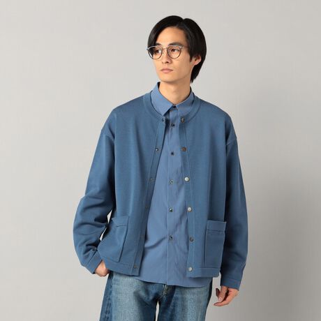 [型番:07-39KO03-206]《デザイン》程よい肉厚のクルーネックカーディガンです。広めの身幅と短丈のボクシーなシルエットとフロントのメタルのドット釦が特長です。《素材》カバーリングされた光沢のあるきれいな糸を使用しています。全体的にストレッチ糸を入れることで、しっかりとした仕上がりになっています。