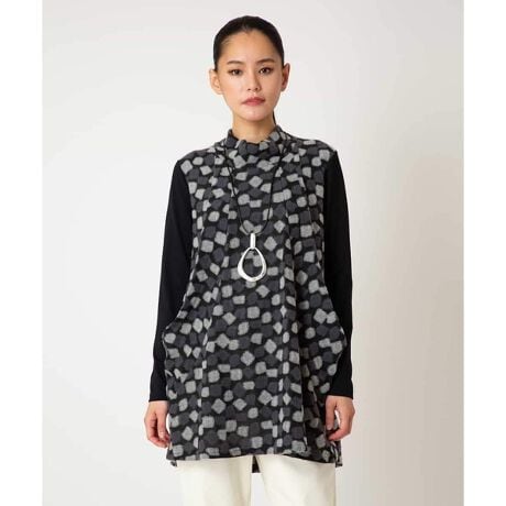 ポリエステルやアクリル、ウールを混合した軽やかなテキスタイルを使用。モチーフに厚みを持たさせた立体感のあるディテールがこだわりです。袖ジャージー素材で快適な着用感です。