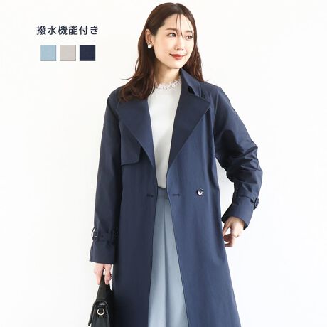 撥水機能付きのロングコートは、軽くてやわらかい素材で、雨の日も安心。トレンチディティールのデザインが洗練された印象を与え、ウエストと袖口のベルトがメリハリ感アップ。洗えるのでお手入れも簡単。忙しい日常の中でも、エレガントさと快適さを兼ね備えたコーデを楽しめるアイテムです。