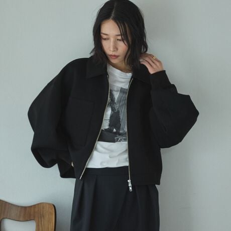 ・ドロップショルダーでボリュームのあるシルエットと短丈のバランスが今っぽい