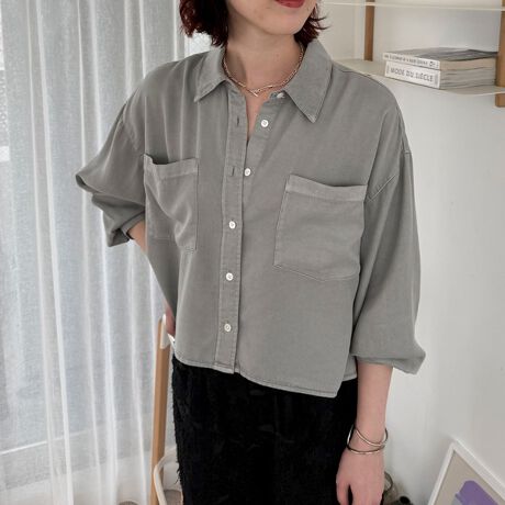 ・ドロップショルダーでゆとりのあるサイジングがトレンド感のあるシルエット