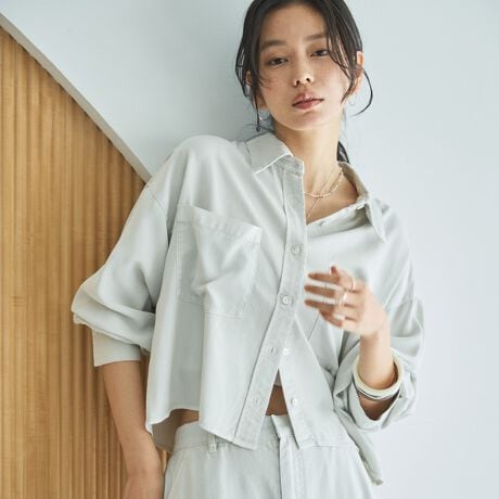 ・ドロップショルダーでゆとりのあるサイジングがトレンド感のあるシルエット