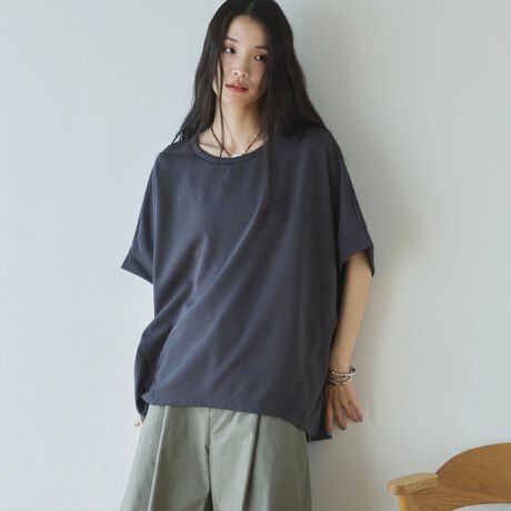 ・前後差のある着丈やドルマンスリーブが気になる部分をさりげなくカバー