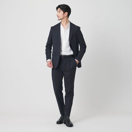 オンオフ対応でも使えて、単品でも着まわせるユーティリティ性が魅力的なカジュアルセットアップスーツ。