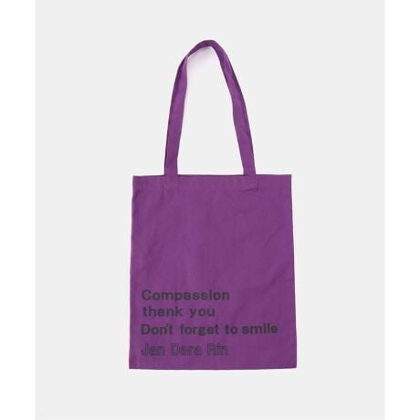 愛知県の三河弁「じゃんだらりん」をモチーフにしたロゴデザインがポイント。スタイリングのアクセントになる配色使いのプリントバッグです。