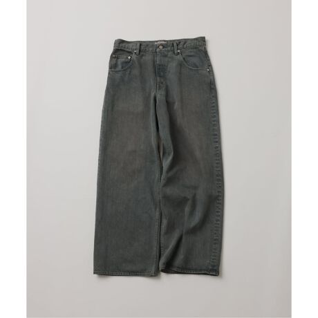 12.5オンスの空紡糸を使用したインディゴデニムをベースに、洗いやシェービング、還元脱色を施した後、天然染料でオーバーダイ。独自の媒染工程により、深みのある色と風合いを持つワードローブジーンズに仕上げました。今期は、ほうれん草を活用したフォレストカラーと、火力発電所の産業廃棄物の灰を利用したコンクリートカラーの2色を製作。廃棄物の再利用を通して、環境とスタイルを両立した独特の色合いが特徴です。