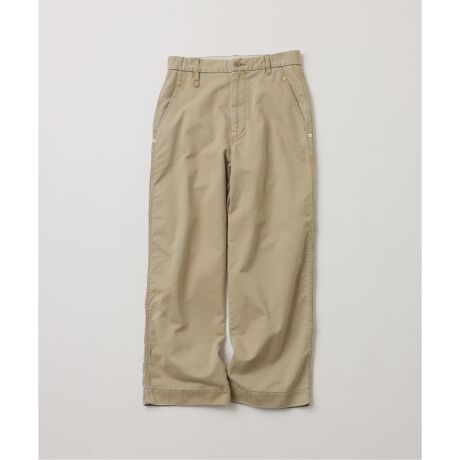 経糸・緯糸共に7番手の太番手で織り上げたチノクロスを使用。生機で微起毛を施し、硫化染めや特殊な柔軟工程を経て仕上げたオリジナル素材を、縫製後にさらに洗い加工。素材本来の耐久性や肉感を保ちつつ、リラックスした膨らみと柔らかさを引き出したワードローブチノです。祖父の愛用パンツから着想を得た、親しみやすさと上品さの両立が特徴。