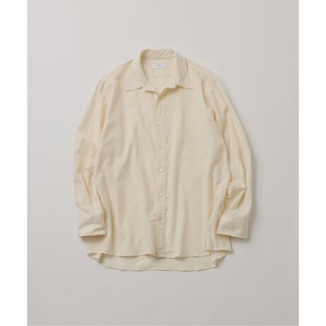 経糸にコットンシルク、緯糸にコットンカシミヤを使用したコットンシルクカシミヤビエラ素材で仕立てた新型シャツ。柔らかさを活かすために程よく余白を持たせたサイズバランスながら、ルーズに見えない整ったシルエットが特徴です。縦長のラインは、大きめのメンズシャツを女性が羽織る場面から着想を得て設計され、極上の肌触りと、風に揺れる上品な生地の表情を実現しました。