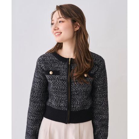 【羽織るだけで品よく決まる、ツイードタッチのニットジャケット】【Point】・ツイード風の表面感がクラシカルなムードを引き立てるニットジャケット。・ニットならではの柔らかさと軽さがありながら、きちんと見えが叶う一着です。・フロントは上品な金ボタンとジップを組み合わせ、女性らしいエレガントさをプラス。・ニットの着心地の良さとジャケットライクなきちんと感、どちらも楽しめる優秀なアイテムです。ケア方法:手洗い可能透け感:なし裏地:なし伸縮性:あり光沢感:なし生地の厚さ:中肉