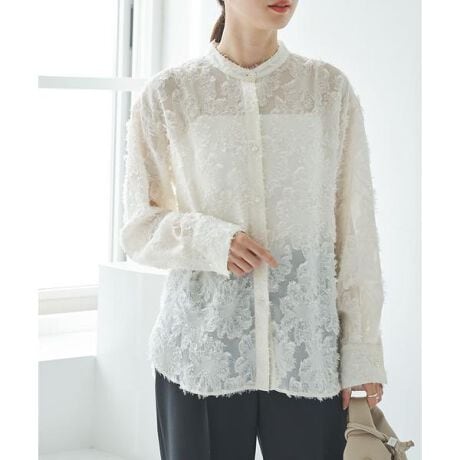 シアー感のあるカットジャガード素材を使用した、華やかな印象のシャツです。