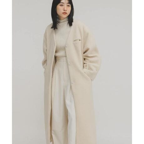 テディベアのようなミニボアを使用したロングコート。小顔効果を発揮するVネック仕様で、袖口は調整可能なベルトが付いており、丸みのあるシルエットに変化できます。防寒対策ができるロング丈ながらも、サイドスリットが入っているので抜け感も叶えます。