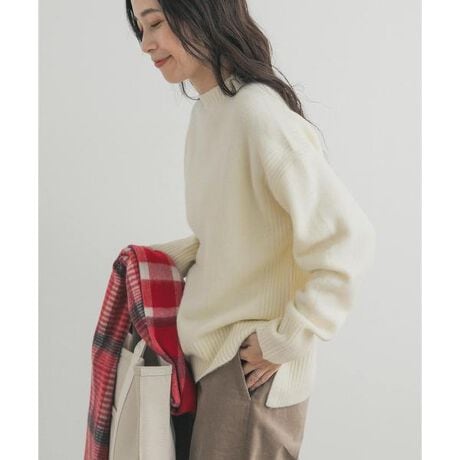 サイドスリットを施したハイネックカラーニットは、程よくゆとりのあるシルエットと、お尻が隠れる着丈が魅力。
