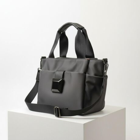 【様々なシーンで使える】普段のお出かけに使える万能バッグ☆「ブラックスクエアナイロン 2Wayトート」。【荷物の出し入れもスムーズ】ファスナー式の開口部は大きく開いて中が見やすく、物の出し入れもスムーズな設計。【お出かけに便利なサイズ】500mlペットボトルや長財布などお出かけのマストアイテムをIN♪【ポーチなどかさばる物もOK】マチ幅を設け、ポーチや手帳など厚みがある小物もしっかり収納ができる。【機能性も抜群の10ポケット】内側と外側に使い勝手の良い10ポケットを配置。バッグの中で小物を探す手間が不要!【手持ちも肩掛けも自由自在】レザー調のハンドルに、調節可能なショルダーベルトを装備した2WAY仕様。【アクセントにスクエアの留め具】フロントの留め具部分には大きな黒色のスクエアモチーフを採用。【ちょっとの汚れや雨を弾く】表地は撥水性があり、通り雨程度の水分やちょっとした汚れを弾くのでお手入れも楽チン☆(※)完全防水ではありません。【デイリーで大活躍な軽量さ】軽量で使い勝手抜群!落ち着いた色味でどんなコーデにも合わせやすく、年代を問わず活躍!