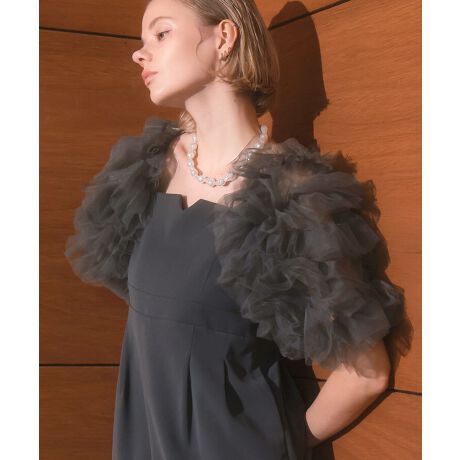 大小のフリルを贅沢に重ねたチュールが存在感を放つボレロ。