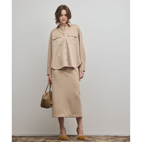 すっきりスマートに着こなす大人のタイトスカート。ジャージならではのストレッチ感が動きやすく、ストレスのない穿き心地が嬉しい一枚です。腰回りをすっきりとさせることで美しいシルエットをお楽しみいただけるようデザインしました。大人のカジュアルスタイルにぴったりなデニム調のデザインで、ワークらしさがあるのもポイント。バックスリットを施し、足捌きにも配慮しました。お揃いでお作りしたスカートを合わせた、ワンランク上のセットアップスタイルもおすすめです。