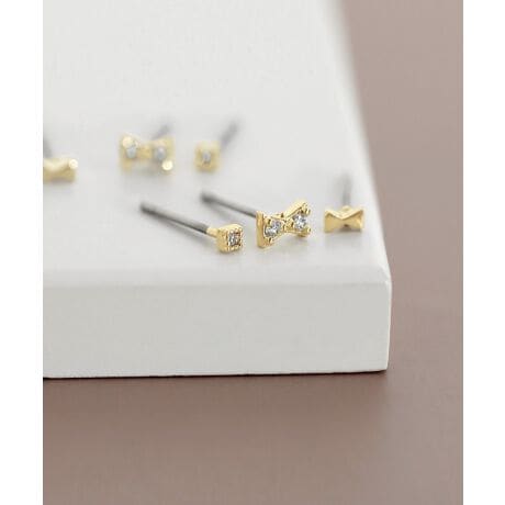 リボン×ビジューピアス[3ペアセット]