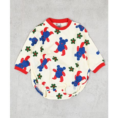 両肩と股部分にカラースナップボタン付き。