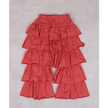 ボリュームたっぷりのフリルを段々に重ねた、華やかさ満点のガーリーパンツ。