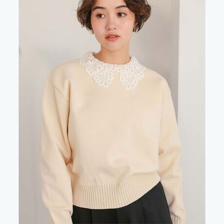 ・クラシカルな取り外しのできる襟デザインで、きちんと感とトレンドを両立したニットプルオーバー