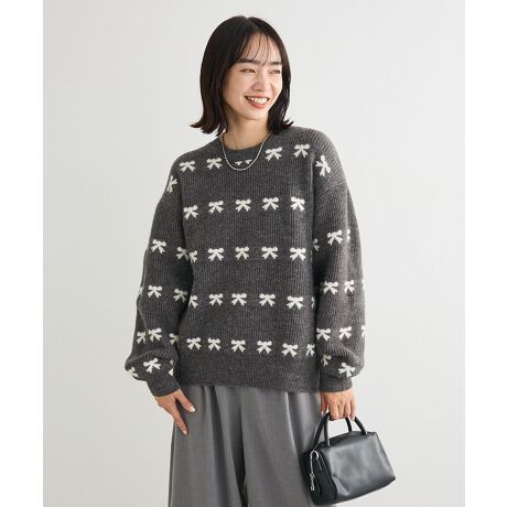 ・swing by リボンジャカードクルーニット
