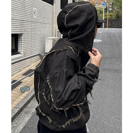 ILL'S グランジ加工 フルジップ デニムフーディ
