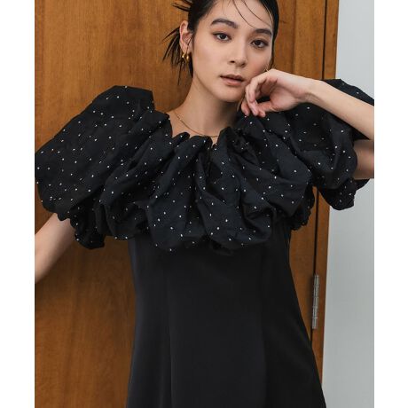 雲のように軽やかなドットジャカードのボリュームトップス。