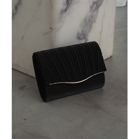 フラップ部分のサテンプリーツがゴージャスな雰囲気のパーティーバッグ。