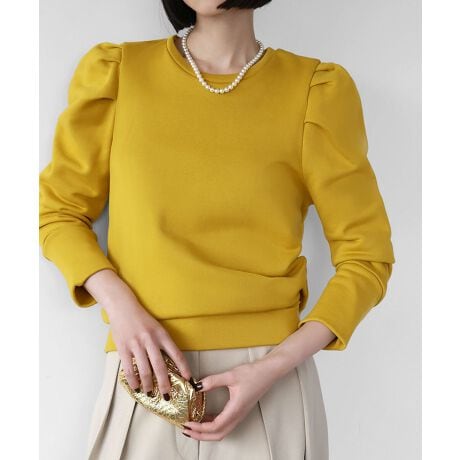 ボリューミーな肩のデザインがトレンドライクな裏毛生地使用のトレーナー。