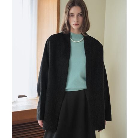 【ウール100%】ノーカラーコート ガウンジャケット ウールコート 冬 ミドル丈 ハーフコート