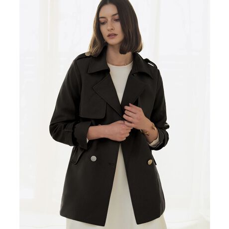 トレンチ風のデザインが目を惹く、上品な印象のハーフコート。