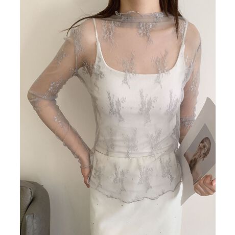シースルートップス 長袖 ハイネック チュール レース メロウ メロー シアートップス