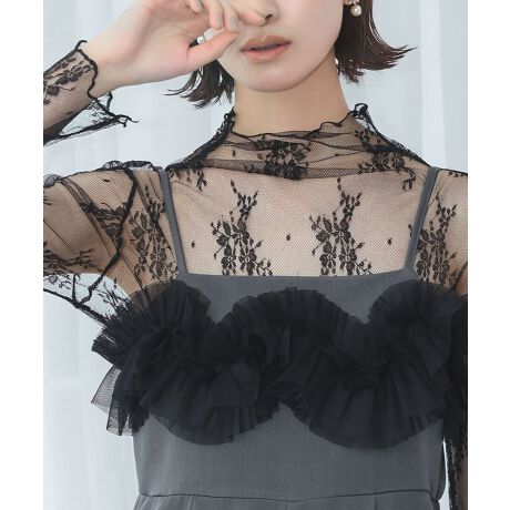 シースルートップス 長袖 ハイネック チュール レース メロウ メロー シアートップス