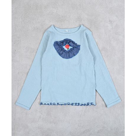 サテンフリルが華やかに見せるリブカットソー