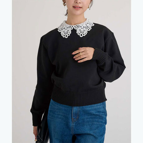 クラシカルな取り外し襟が上品に映えるニットプルオーバー。