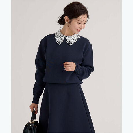 クラシカルな取り外し襟が上品に映えるニットプルオーバー。