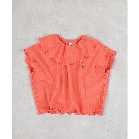 表情のあるニットサッカー素材に、首元のフリルカラーがポイント。