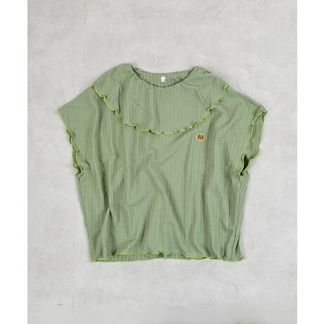 表情のあるニットサッカー素材に、首元のフリルカラーがポイント。