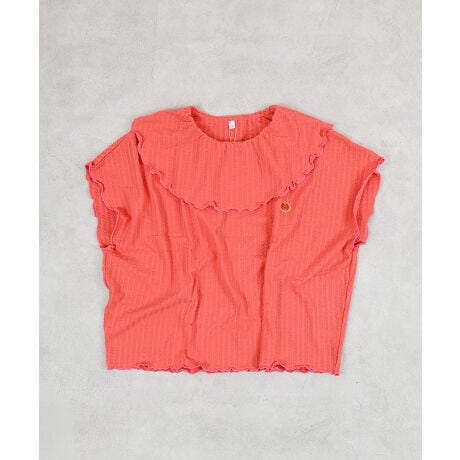 表情のあるニットサッカー素材に、首元のフリルカラーがポイント。