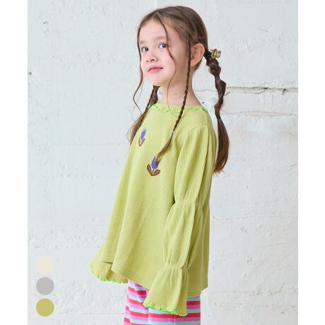 ジャンパースカートやサロペットのインナーとしても袖デザインが映えます。