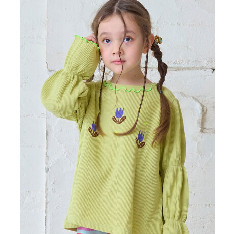 ジャンパースカートやサロペットのインナーとしても袖デザインが映えます。