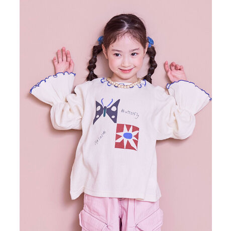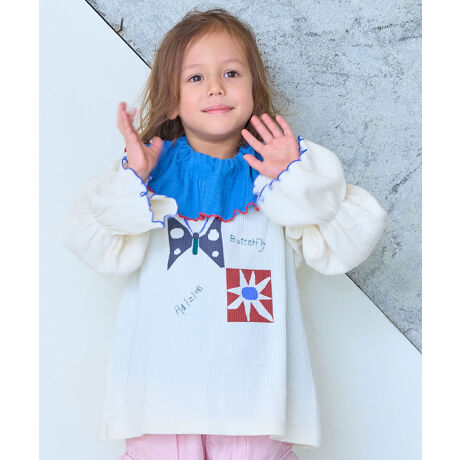 ジャンパースカートやサロペットのインナーとしても袖デザインが映えます。
