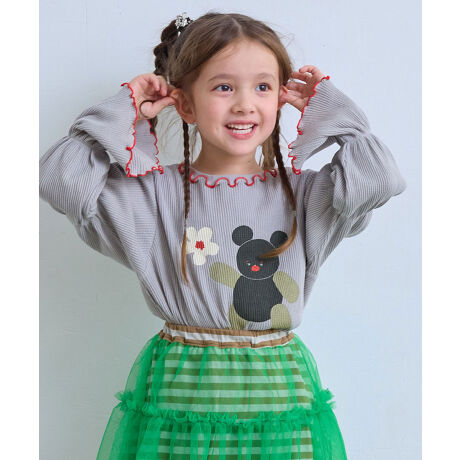 ジャンパースカートやサロペットのインナーとしても袖デザインが映えます。