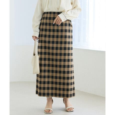 大きめのギンガムチェックが大人可愛い、スタイリングの主役になるナロースカート。