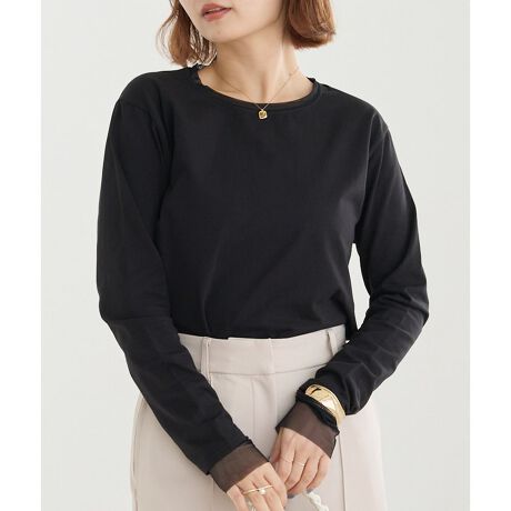 袖口と衿ぐりに透け感のあるチュールを使用することで、抜け感のある軽やかな印象に。 着るだけでさりげない個性を演出できる、大人のデイリーアイテムです。