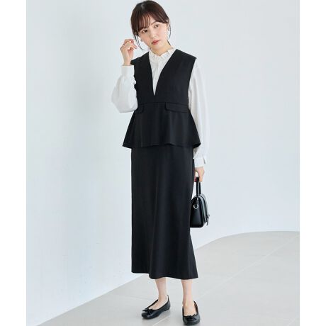 ジレとスカートがドッキングした、上品なジャンパースカートワンピース。