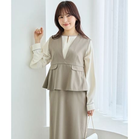 ふんわりと広がるペプラムデザインが、気になるお腹周りをさりげなくカバーしつつ、女性らしい立体的なシルエットを演出します。