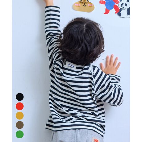配色が楽しいボーダー柄の長袖カットソー。