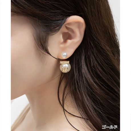 [型番:FA37089]<26春夏新作>上品なパールとモノグラムデザインが印象的なピアス。顔周りをさりげなく華やかに仕上げてくれるアイテムです。POINT・モノグラムのメタルパーツが埋め込まれたパールピアス・一癖あるデザインでこなれ感UP
