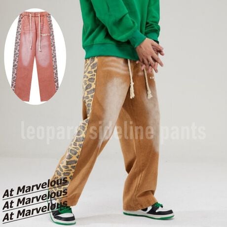 サイドライン ヒョウ ストレートパンツ ボトム ボトムス メンズ 派手 インパクト レオパード